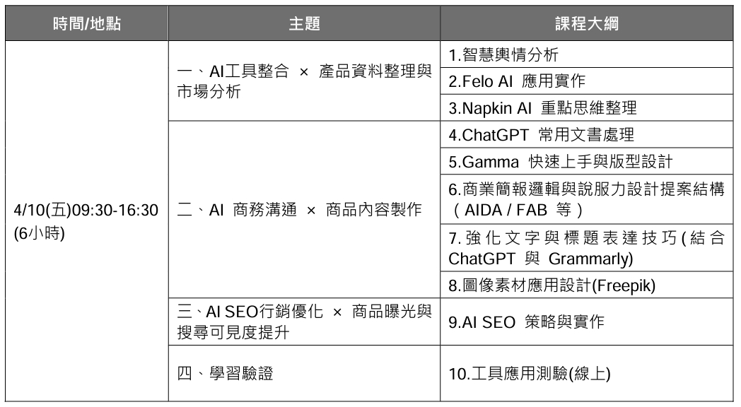 📌這不只是「學會工具」,而是學會把 AI 真正用在商務場景裡,直接解決你每天面對的痛點。
