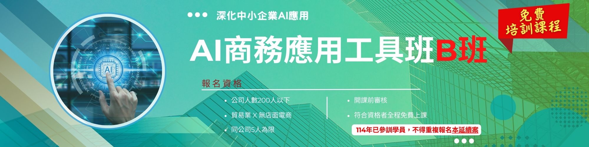 💰 課程費用:符合資格者,全程免費(名額有限,額滿為止!)